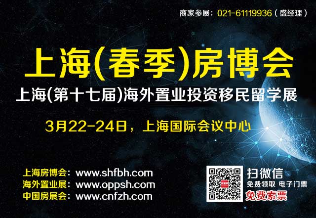 • 上海海外置業展,時間地點:4月5-7日在上海世貿展覽館